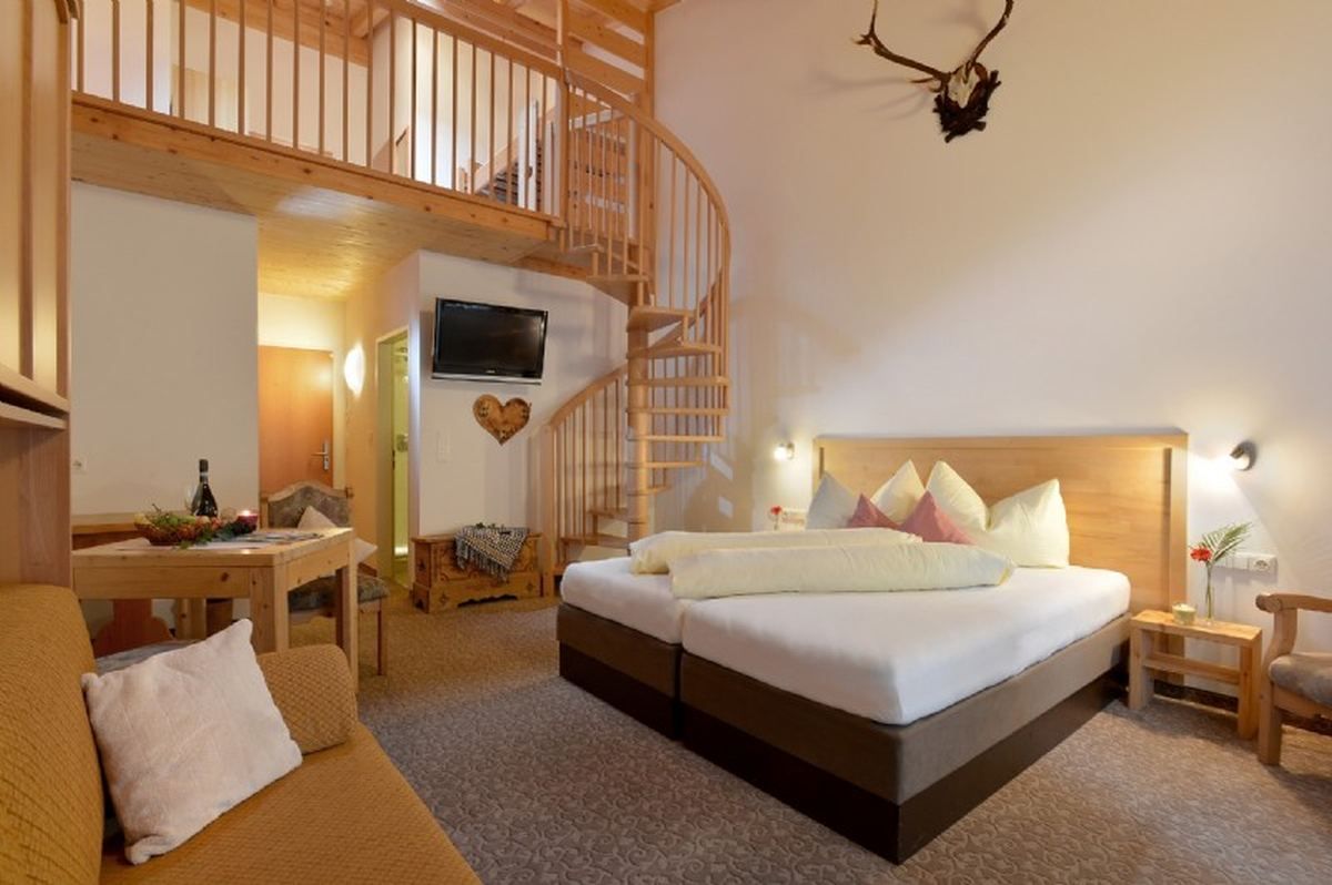 Erleben Sie gemütliche Stunden im komfortablen Familienzimmer an der Ostseite. Familienzimmer mit Teppichboden. Über eine Wendeltreppe gelangt man auf die Galerie ins offene Kinderzimmer. Das ideale Zimmer für die Familie (zwei Erwachsene und bis zu vier Kinder).